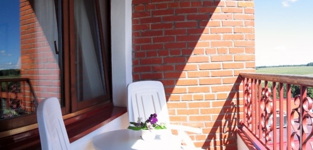 В номере: две 1,5-спальные кровати, тумбочки, бра, коврики, туалетный столик, два встроенных платяных шкафа, ТВ, кондиционер, радио, выход на балкон (летняя мебель).
