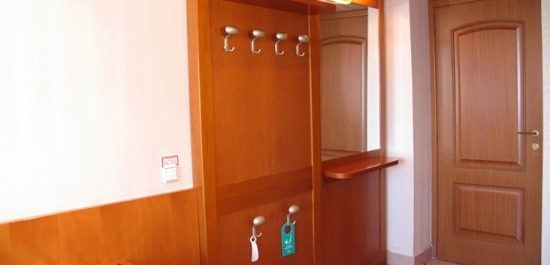 В номере: диван (еврокнижка), кресло, TV на тумбе, кондиционер, внутренний телефон, круглый стол, бра, картина, кухня-студия, или встроенная(холодильник, полка с набором столовой и чайной посуды, электрочайник), ковер, выход на балкон, прихожая, 2-спальная или две 1,5-спальные кровати, тумбочки, бра, коврики, туалетный столик, два встроенных платяных шкафа, кондиционер, радио, выход на балкон.