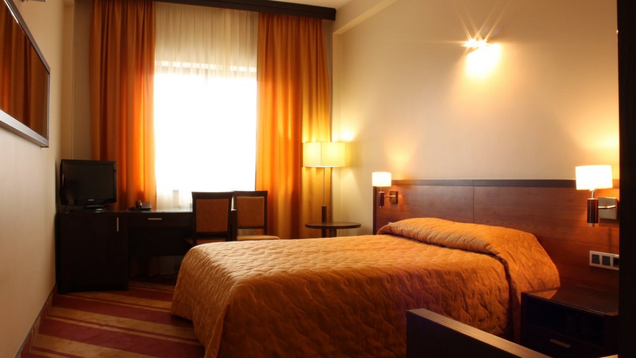 В номере: двуспальная кровать размера 1,8 м на 2 м, тумбочка,стул и письменный стол, настольная лампа, шкаф, ЖК телевизор, телефон, мини-бар, электрический чайник, набор посуды, сейф, бесплатный wi-fi, кондиционер